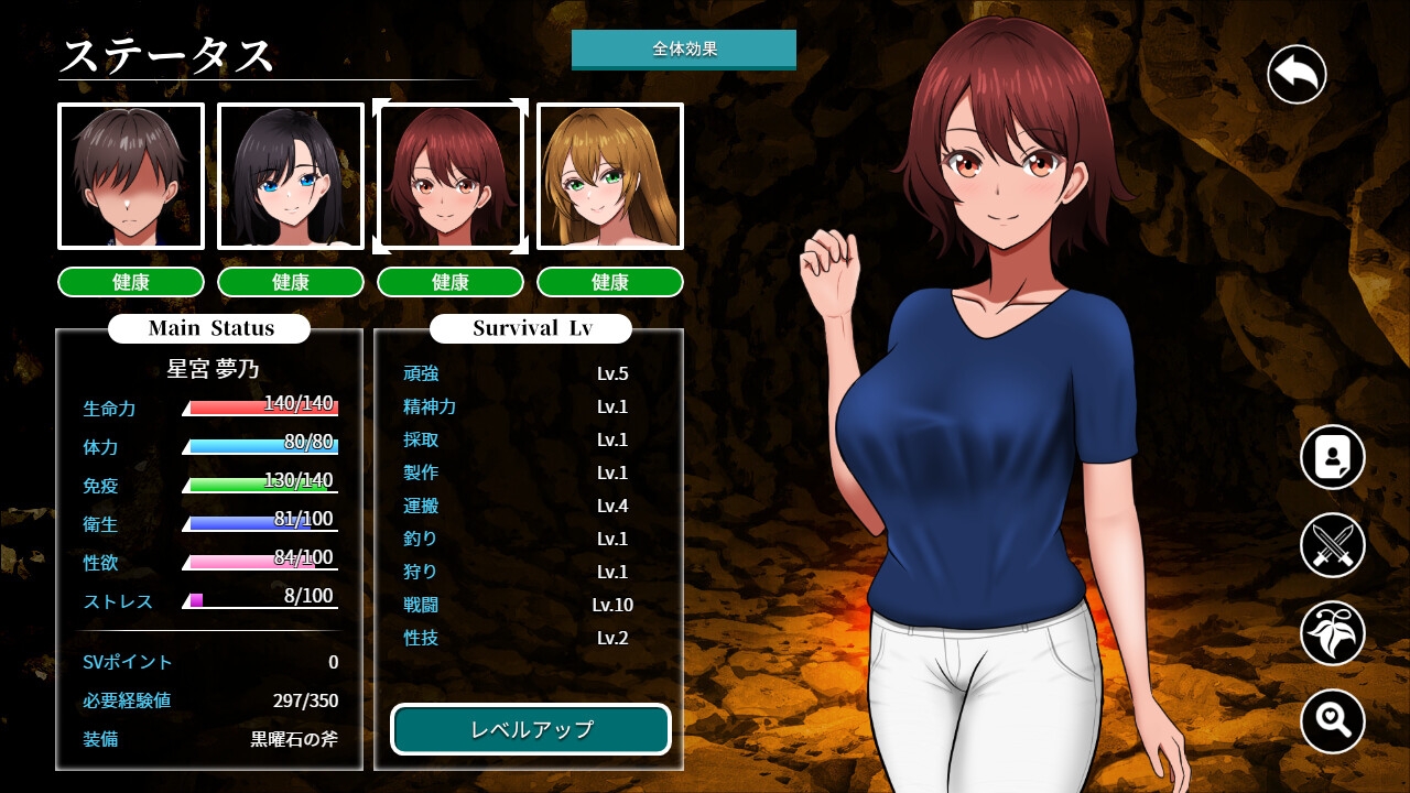ヒロインたちと協力しながらサバイバル生活を生き延びましょう。